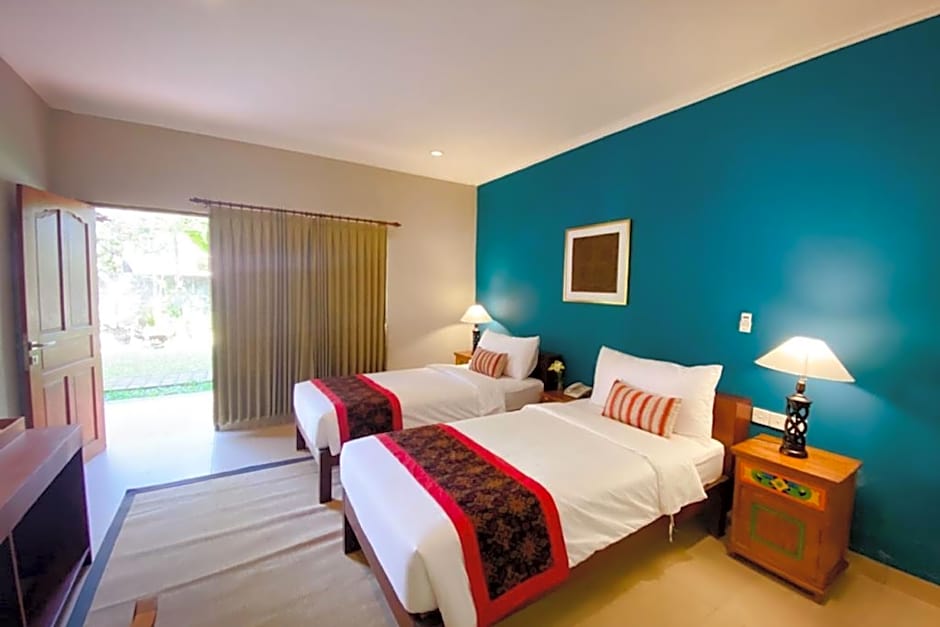 This villa has a balcony with mini jungle view, sharing public pool, room amenities, yukata, sleepers, in safe box, mini bar & 2 bottles water.